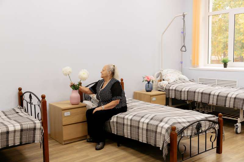 - Комфортные и уютные комнаты для проживания пожилых людей. Вся инфраструктура пансионата адаптирована для нужд пожилых людей: просторные светлые номера, оснащенные всем необходимым, широкие коридоры для удобного передвижения, лифты, а также наличие специального оборудования для медицинского обслуживания.