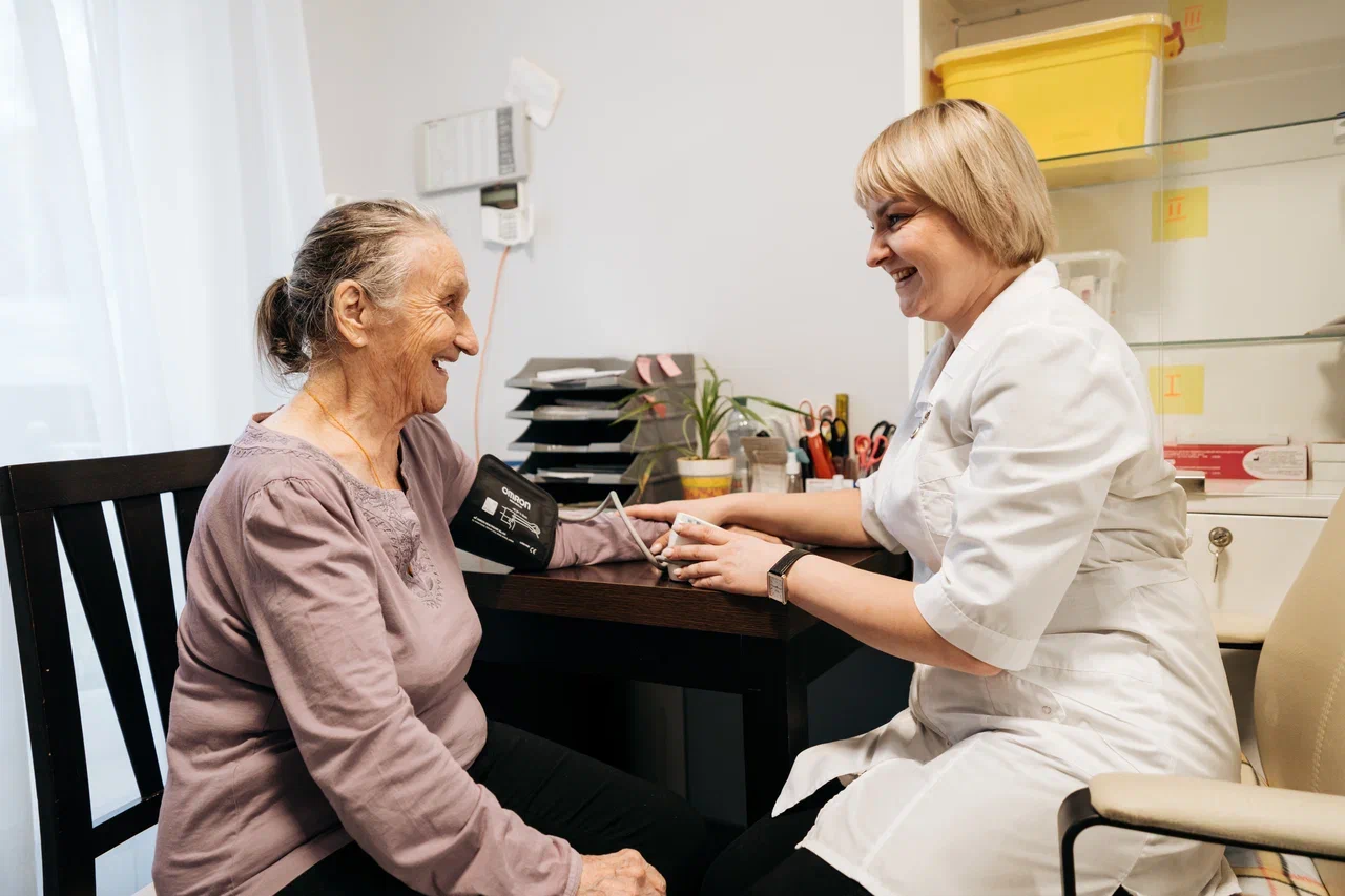 Круглосуточный присмотр обеспечивают медсестры и сиделки. Мы проводим ежедневный мониторинг здоровья (давление, пульс, сахар), выполняем медицинские назначения и оказываем помощь в гигиене.