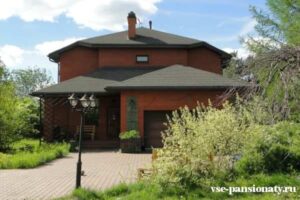 Пансионат занимает большой кирпичный двухэтажный особняк со всеми удобствами, построенный по индивидуальному проекту. Есть огороженная и хорошо ухоженная придомовая территория. Отличные мощёные дорожки вокруг стриженых газонов с травой и садовых деревьев, оборудованных вечерним освещением, есть крытая беседка с лавочками для прогулок в любую погоду. Есть птичник с живыми курами, периодически выводятся цыплята, что является не только подспорьем домашнего хозяйства, но и выступает как часть профилактики возрастных заболеваний.