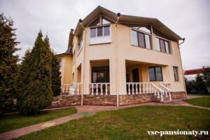 Пансионат занимает большой трехэтажный особняк со всеми удобствами, построенный по индивидуальному проекту. Есть очень большая огороженная придомовая территория, имеется спортплощадка с тренажерами. Есть хорошие дорожки для прогулок, лавочки для отдыха. Использованы элементы ландшафтного дизайна. На входе в дом сооружена большая крытая терраса с лавочками для отдыха, рядом с террасой есть небольшой декоративный пруд. На территории есть большие лиственные деревья.