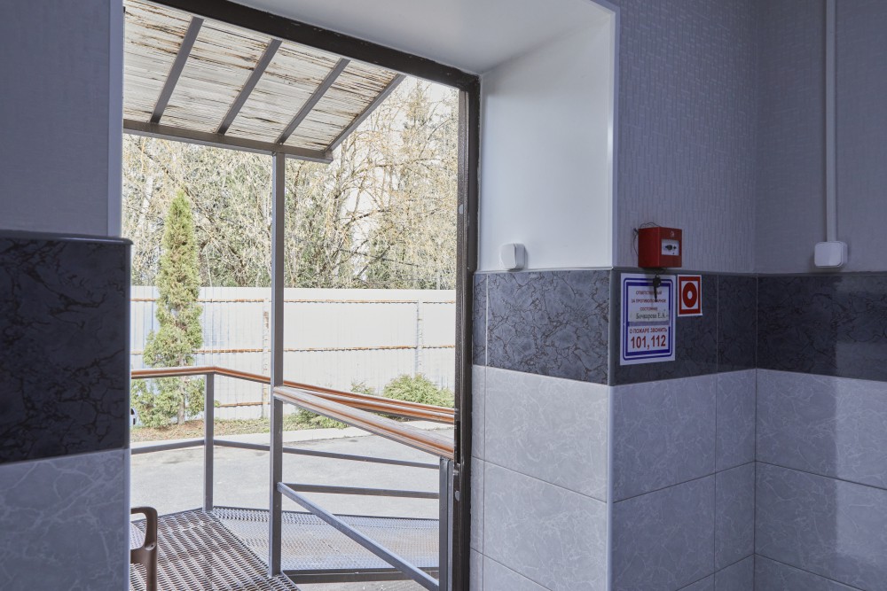 - Тщательный контроль и гарантии безопасности. Регулярно проводится независимый аудит качества обслуживания. Территория частного дома престарелых находится под видеонаблюдением, в здании установлена современная система пожарной безопасности.
